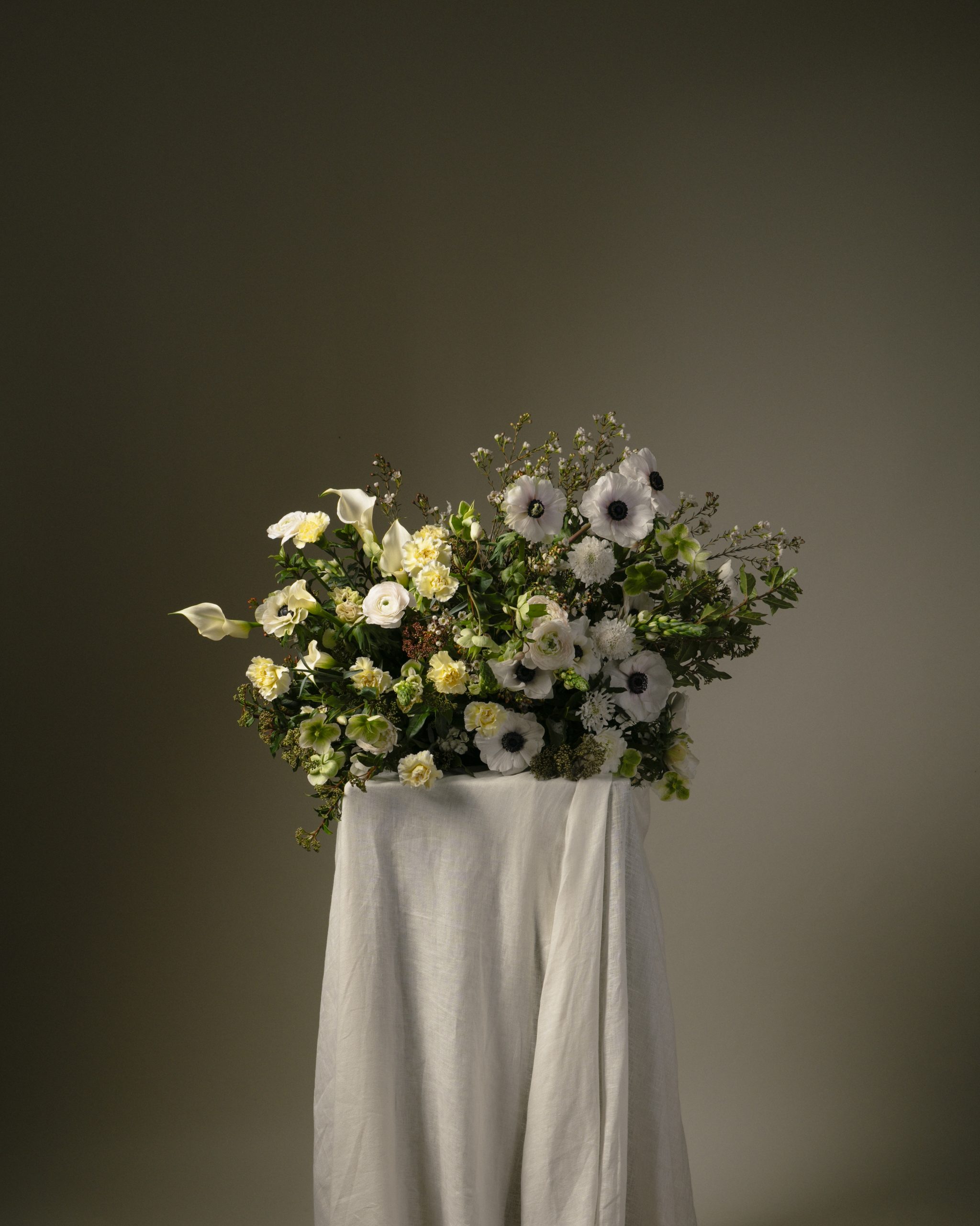 • Fleurs de saison : une sélection harmonieuse de fleurs fraîches et authentiques, choisies en fonction de la période de l’année pour un rendu naturel et sincère.